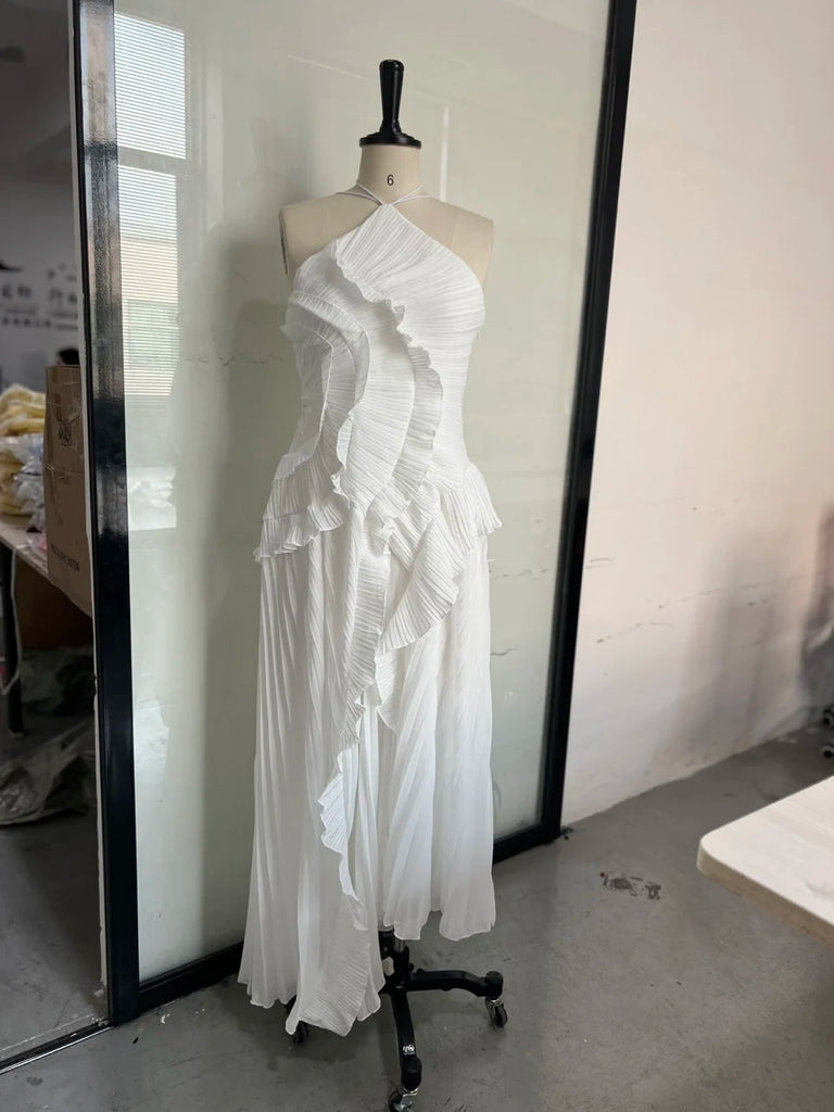 Absolutely. The refined halter neckline and flowing maxi silhouette make it perfect for weddings, evening events, and special occasions.